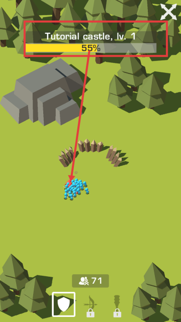 3、保持持续作战状态,把【Tutorial-castle,-lv.-1】的进度提升到55%,分阶段完成区域占领。