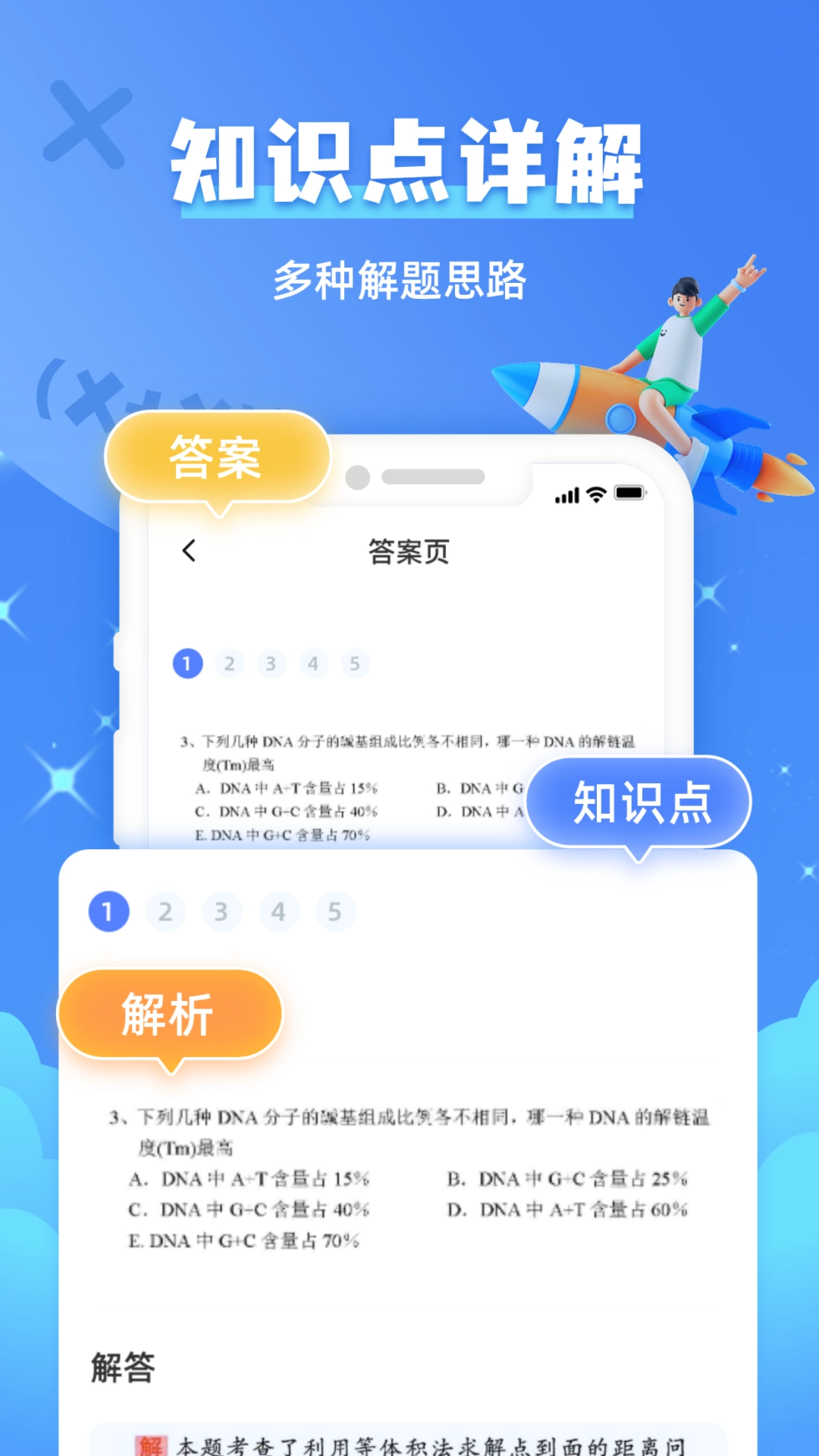 2、一键搜题,答案立现,多种解题思路任你选择。