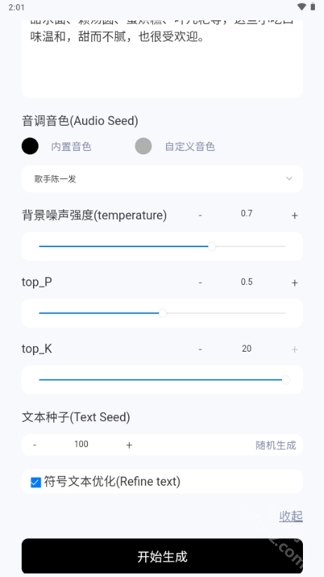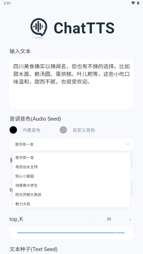 ChatTTS安卓版是一款将AI技术融入到配音领域的智能AI配音神器。和普通的配音软件相比chatTTS手机版更加的智能、操作也更加的简单。这个ChatTTS的软件当中包含了不同类型的声音模型,用户只需将需要配音的文字复制进来,然后选择合适的声音即可一键配音,特别适用于视频制作、有声读物等多种场景!