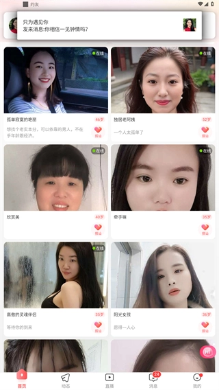约友,一款专为现代人设计的社交应用,致力于帮助用户轻松拓展社交圈,结识志同道合的新朋友。通过精准的兴趣匹配和丰富的互动功能,约友让社交变得更加简单、有趣。