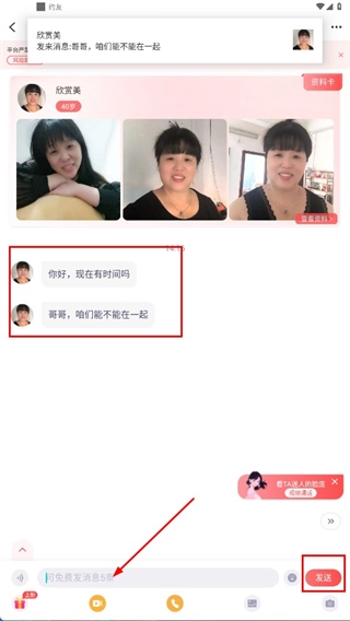 4、在聊天界面,输入框填写消息后点击【发送】,与对方进行对话互动。
