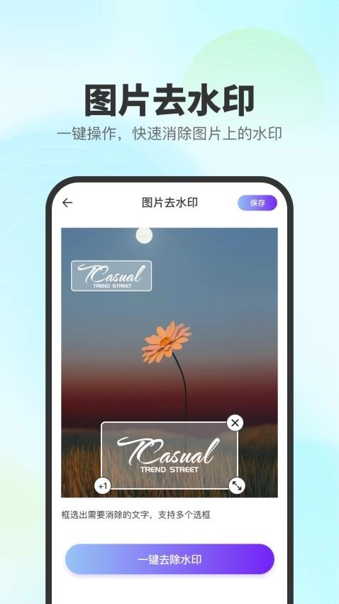 1. 去除图片水印:帮助用户一键清除图片上的水印。