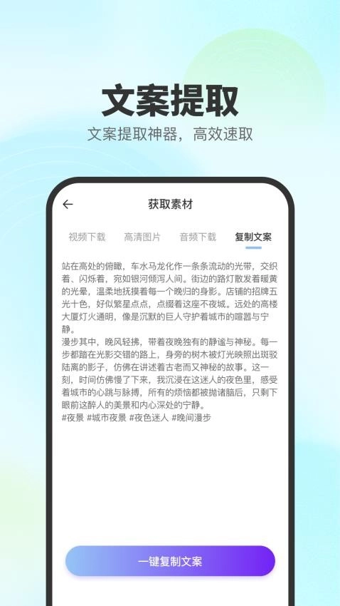 - 文案提取:支持快速提取文案,方便用户获取内容。