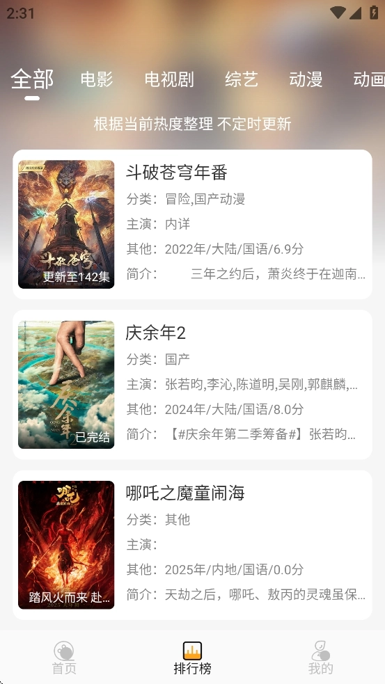 云端影视2025其实就是最新版本的云端影视,作为一款备受推崇的手机追剧软件,让我们能够在手机上观看到各种类型的影视资源。为了让我们可以发现更多的精彩影视,云端影视最新版还贴心地提供了众多榜单排行,让我们能够清楚地知晓哪些影视是当下最值得观看的。并且云端影视2025软件还支持影视作品的离线,以便自己能够随时随地进行观看。如果是待在家里的话,我们还可以进行投屏,从而享受大屏幕下的观影体验。此外,云端影视还做到了在第一时间内同步院线新片和电视剧集,非常不错!