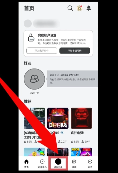 2.然后输入注册信息即可创建成功,点击最下方的虚拟形象就可以开始捏人啦。主页的游戏图都是可以游玩的哦