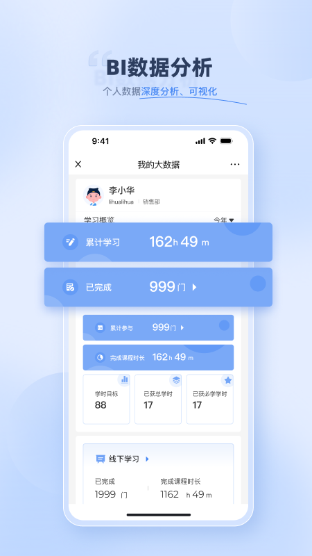 3、平台支持PC端、微信端等多终端学习场景,可实现随时随地随需学习,学习数据还能实时同步跟踪。