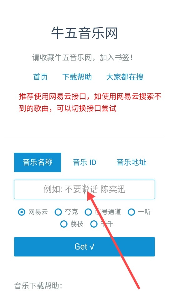 2、接着在首页的搜索框内输入想听的音乐名称,具体操作可以参考下图。