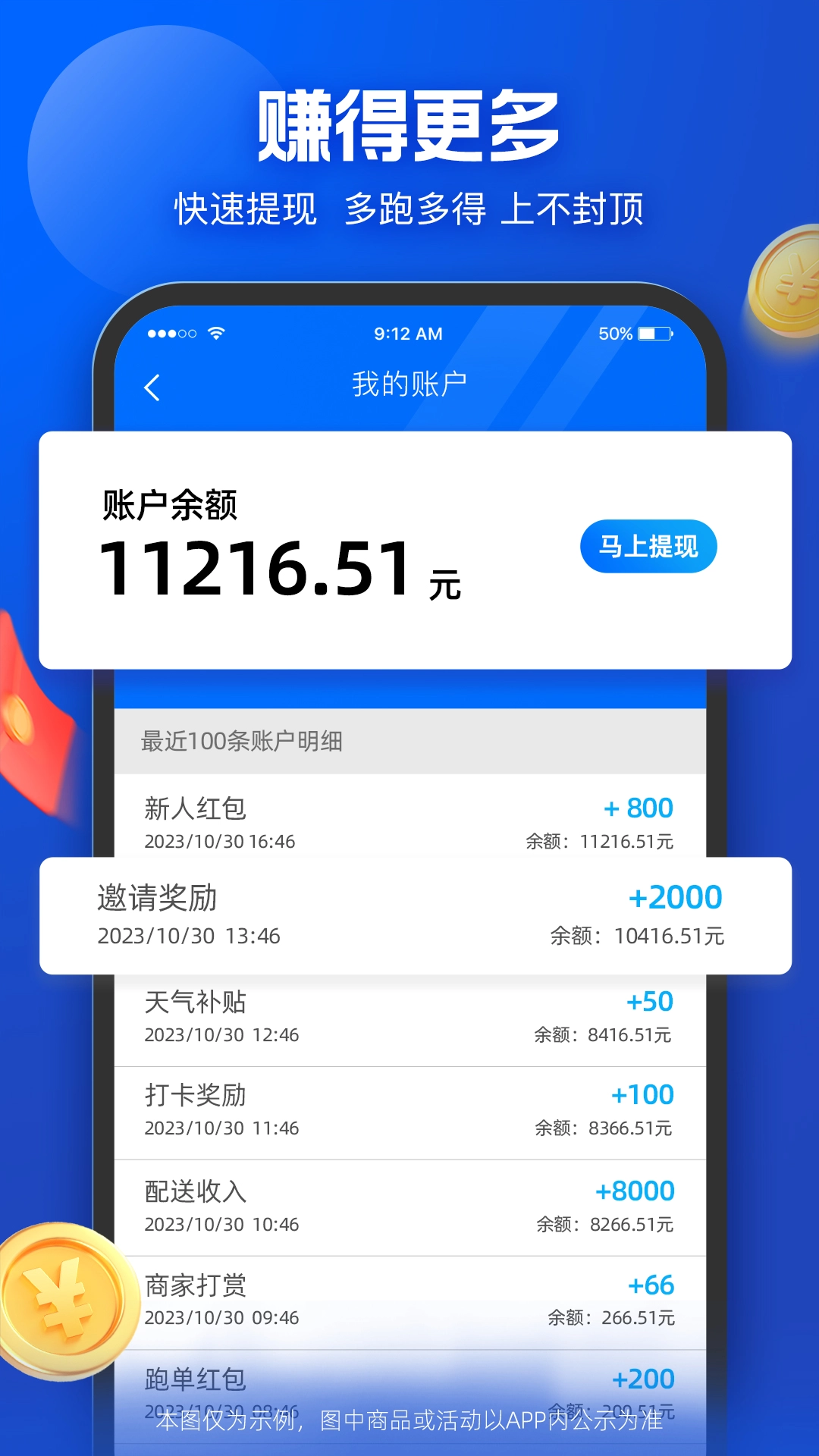 3.提供详细的收入统计功能,骑手可以查看每单收入、奖励等,并支持灵活提现。