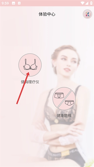 1、在体验中心界面,点击【健胸理疗仪】对应的图标,进入该设备的功能操作页面。