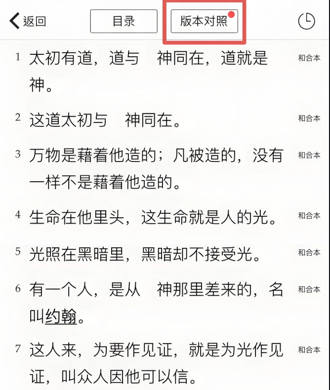 1、在阅读经文时,点击底部工具栏的“对照”按钮。