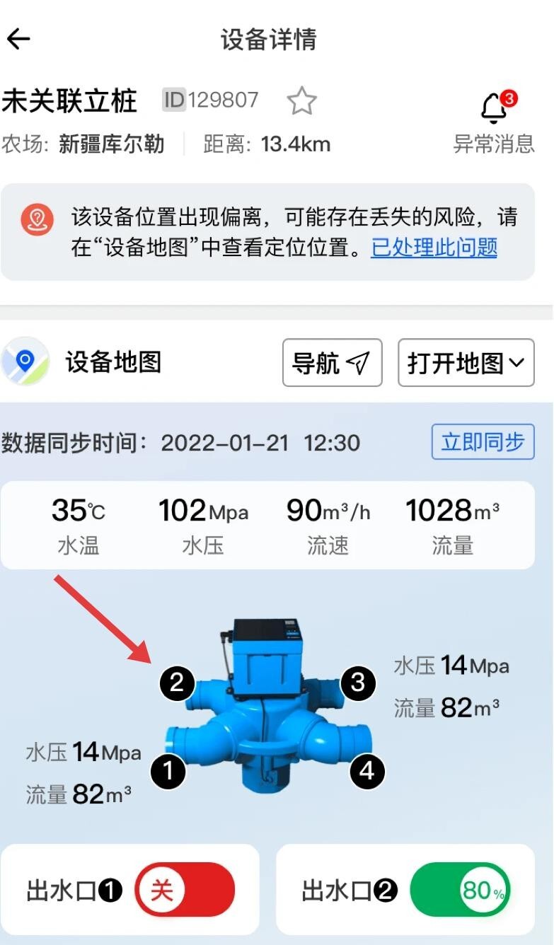 2、进入设备详情页面后,可查看设备的各项参数;接着轻点设备上标注为2的区域,即可了解该对应位置的运行状态。