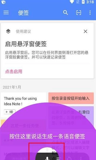 任意界面滑出,触摸并说话,它会自动将您的声音转换为文字并保存您的声音。