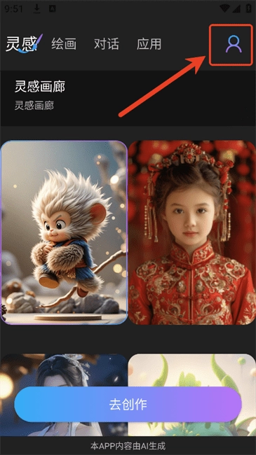 1、打开napkin ai软件,点击屏幕右上角的“个人中心”。