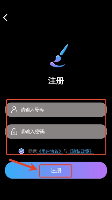 4、在注册页面中输入手机号码和设置密码,并勾选同意相关协议。