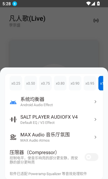 4.Salt Player 提供了丰富的音频调整选项,如 MAX Audio 声学调音和 SALT FX V4+ 音效。你可以在播放界面找到这些设置,并根据你的喜好调整音频效果。