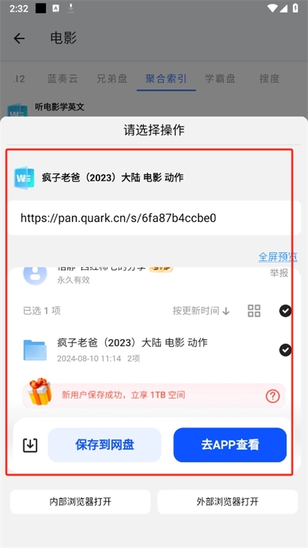 7. 也可以选择保存到我们的网盘中,以便日后查看和使用。