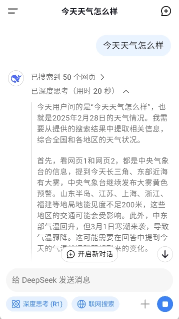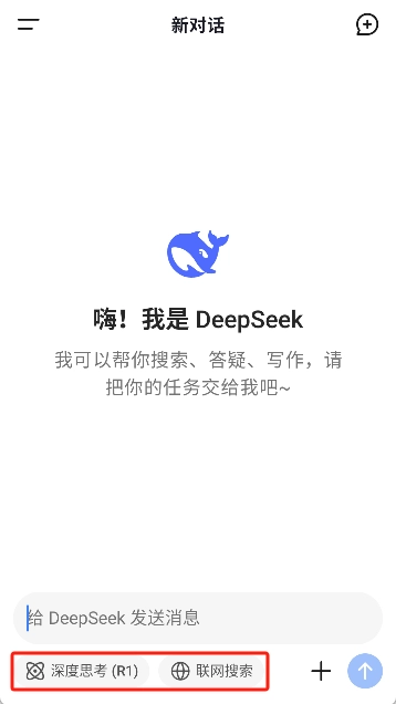 3、在对话框下方选择功能模式,如“深度思考”或“联网搜索”。