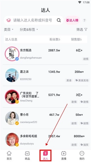 1、好后,点击进入,用户可以在【达人】板块直接查找主播。