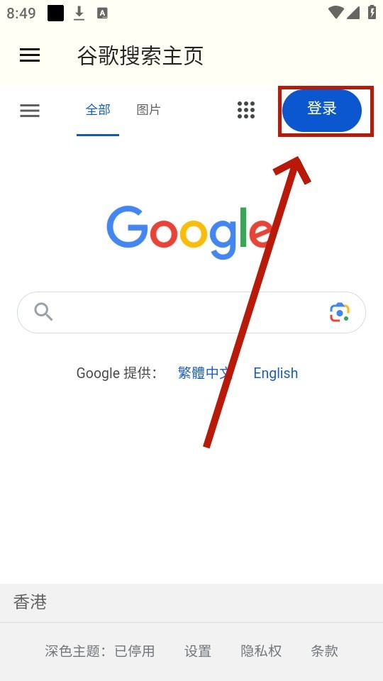 右上角登录