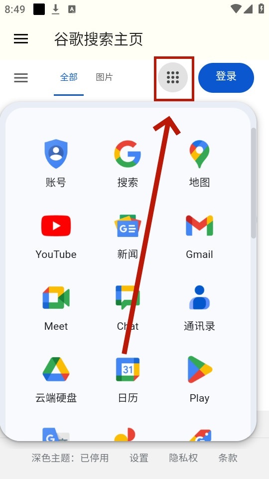 可以跳转到其他的谷歌应用