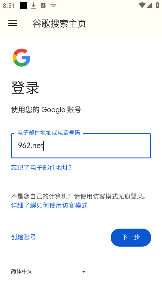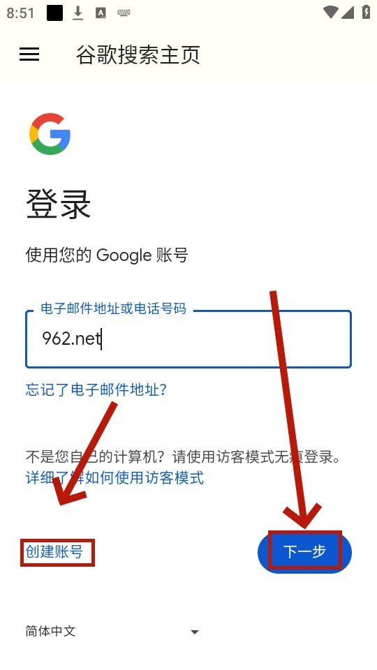 输入账号信息后