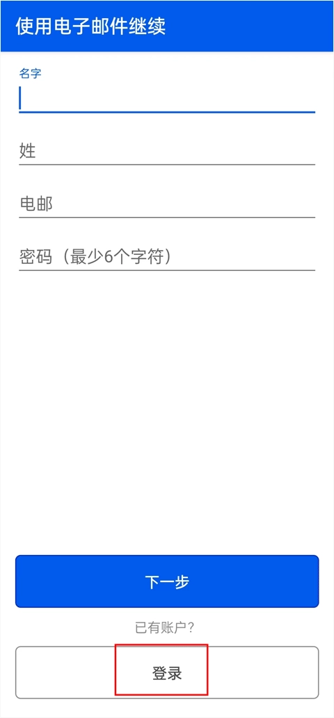 2、这边我们选择的是电子邮件登录,就在下方选择登录;