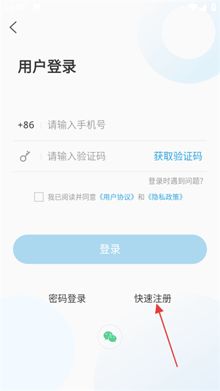 在用户登录页面,点击“快速注册”按钮即可跳转至用户注册页面。
