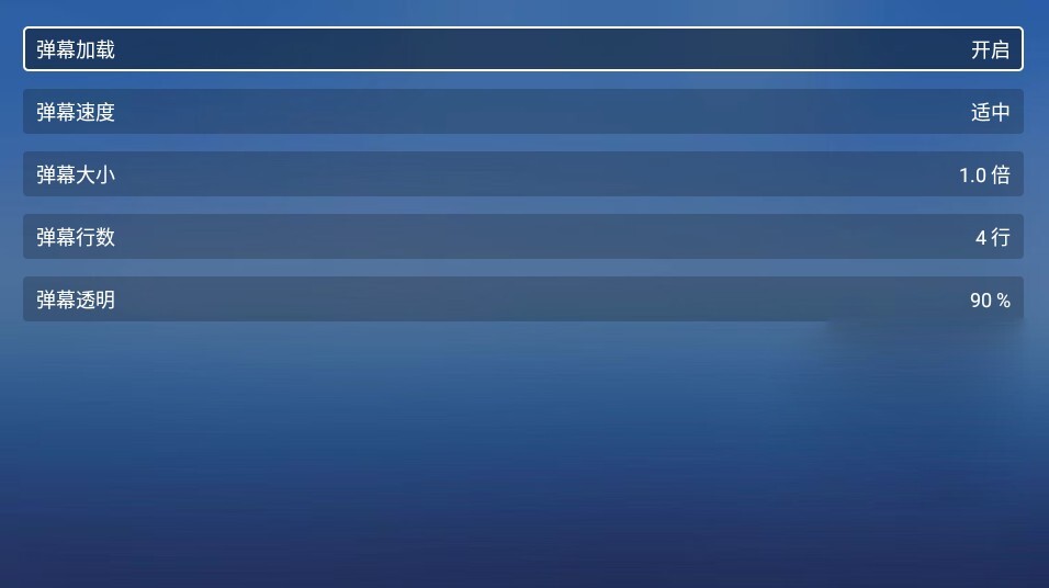 3、接着就能对弹幕的内容、速度、大小、行数和透明度进行自定义设置了。