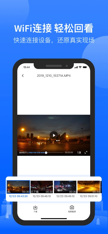 - 可查看、管理记录仪中的历史视频与图片,支持播放和。