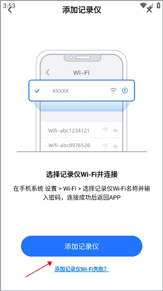 4、界面会跳转到WiFi设置,此时我们需要连接至记录仪的WiFi网络。