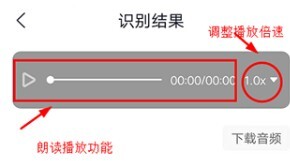 4、识别完成后,点击上方按钮即可播放朗读文本内容,同时还能选择调整播放倍速。