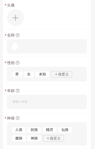 自定义角色形象、性格标签、背景故事
