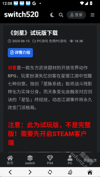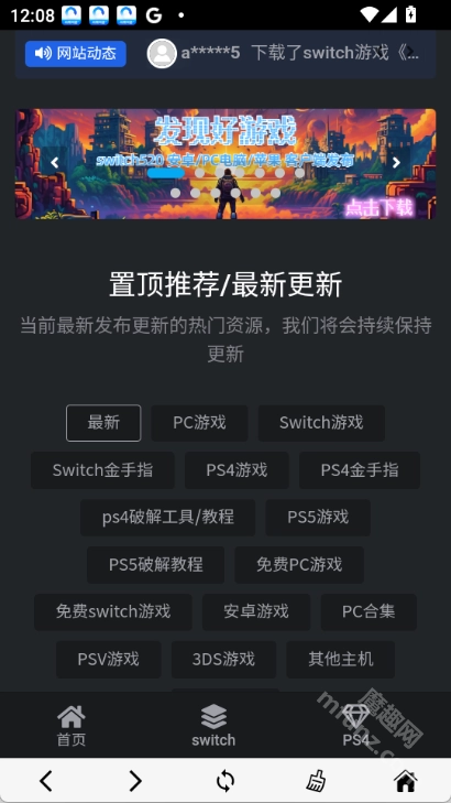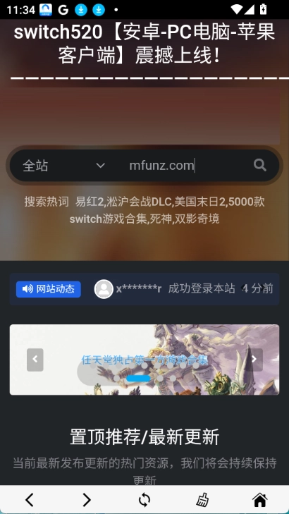 switch520游戏网站还有一个外号叫Switch免费白嫖网站,是一个综合性的游戏资源平台,为了方便安卓手机用户使用,现推出了安卓及其他平台客户端,switch520游戏网站提供了包括PC游戏、Switch游戏、PS4游戏、PS5游戏在内的多平台游戏资源。大家可以通过这个平台获取游戏、游戏新闻、攻略等多元化内容。