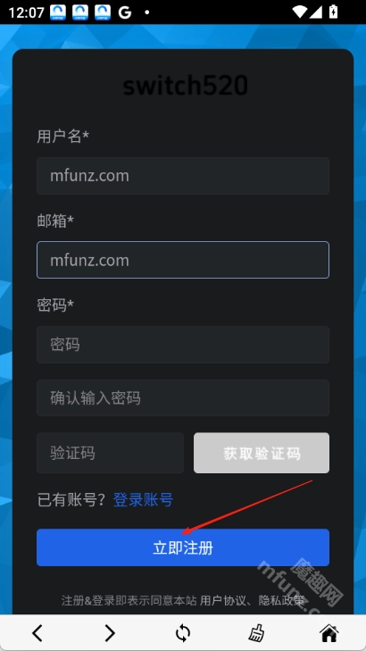 1.打开Switch520网站,点击右上角“登录”按钮