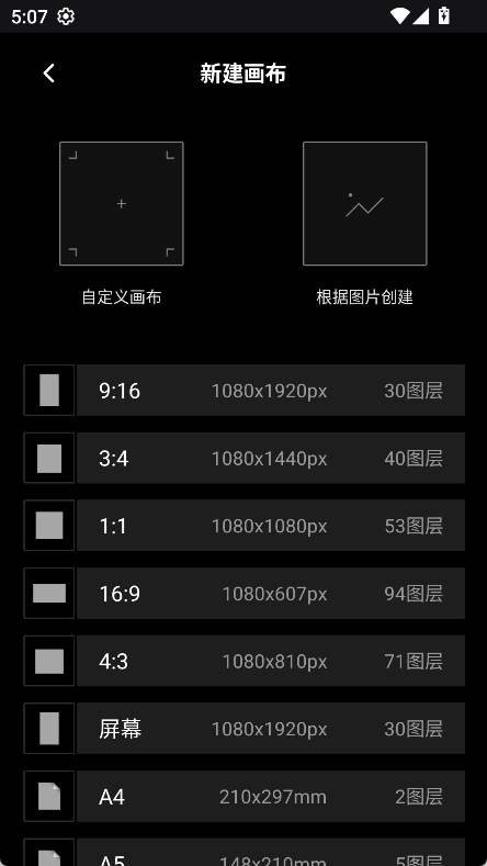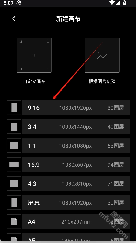 4、选择合适的尺寸并点击即可新建画布
