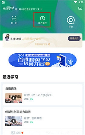 2、点击【加入课程】按钮。