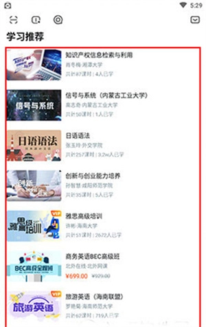 完成上述步骤后,点击【确认】按钮,所选课程将出现在【学习】界面。