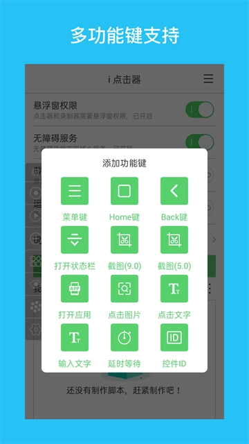 1、首次打开记得去设置里开悬浮窗和无障碍权限,不然点不了,开了才能让i点击器正常干活