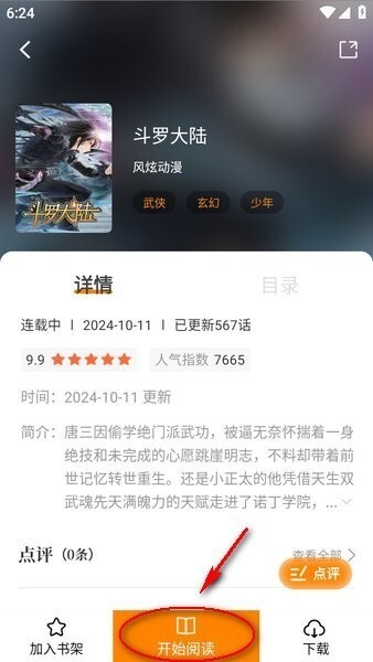 4、最后,挑选想要阅读的漫画,进入详情页后,点击底部中间位置的“开始阅读”按钮就可以啦!