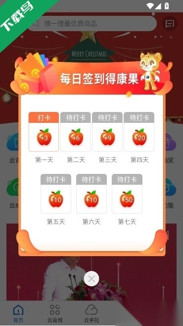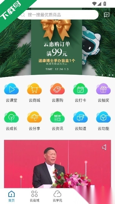 云惠购:分享产品领取红包,各类优惠惊喜不断;云学苑:学习知识赚取康果,平台提供大量产品资讯与健康理念;云智联:连接物联网设备,助力提升日常生活品质;云健康:在线专业医师团队提供咨询,宛如随身健康顾问;云娱乐:多款互动小游戏,趣味中学习,还能赢取额外康果。