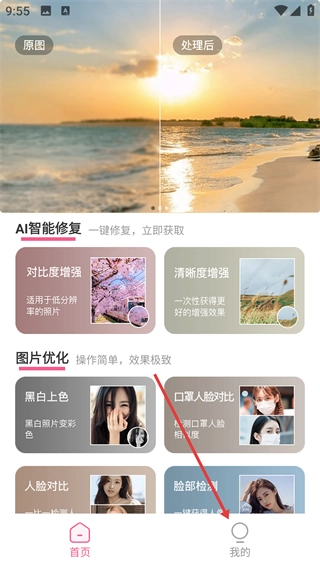 1、在图片处理工具的首页,点击底部导航栏的【我的】选项,进入个人中心页面。