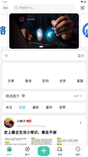 蓝天社区是一款综合性的资源分享社区软件,为我们提供了一个可以自由交流的平台。我们不仅可以自由地发帖分享各类实用的玩机冷知识,还能够在其他帖子下进行评论,发布自己的看法,与其他的用户一起互动。在蓝天社区软件中,我们可以各种好用的电子书、影视、音乐等软件资源到手机上,并且提供了高速通道,速度超快的!此外,蓝天社区还提供了多个讨论板块,要是对哪个板块感兴趣就可以加入进去,参与投票、问答等互动形式,打造出属于自己的社交圈子!