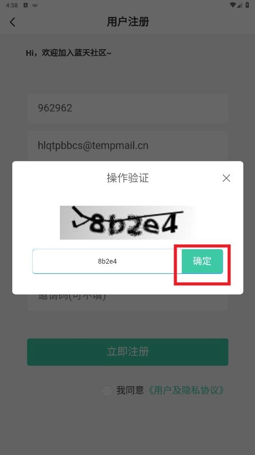 5. 去邮箱查看并填写收到的验证码,点击“注册”完成注册。