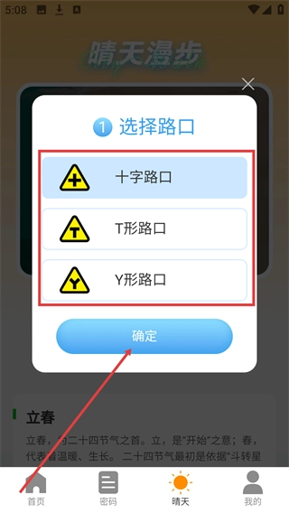 4、在路口选择弹窗中,选定目标路口类型(如十字路口),点击“确定”按钮完成选择。