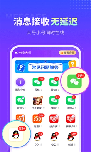 3、便捷管理所有已添加的分身应用,确保消息接收的及时性。
