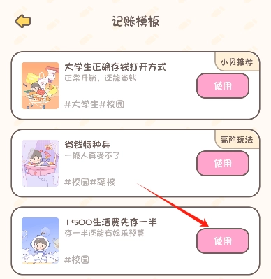 2、在记账模板页面中选择合适的模板,并点击“使用”按钮。