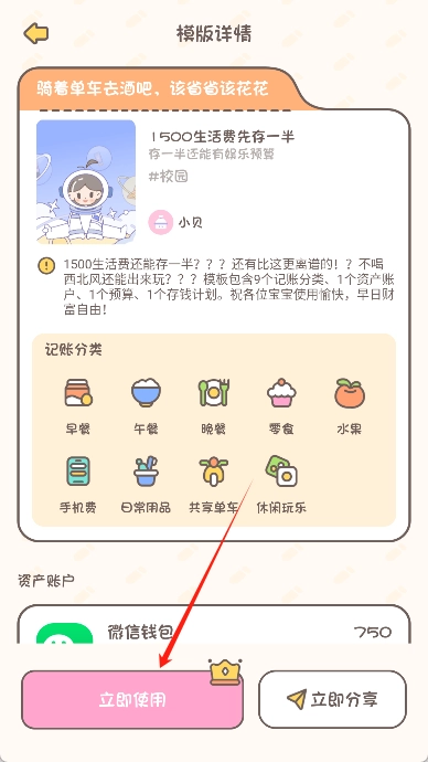 3、在弹出的窗口中点击“立即使用”即可开始记账。