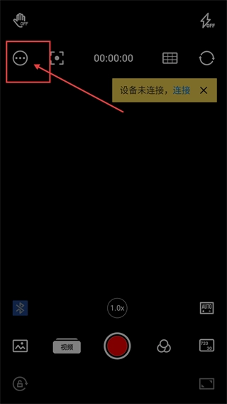 2、在拍摄界面,点击左上角的功能按钮,可展开相关设置选项,同时需先连接设备以消除“设备未连接”提示。