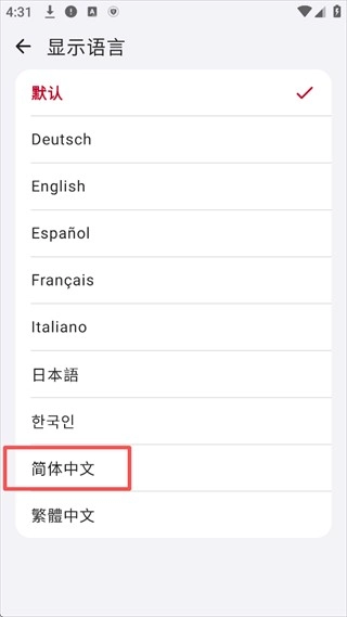 4、在语言列表中,找到“简体中文”并点击切换。