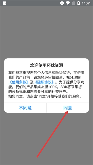 1、阅读《使用条款》及《隐私协议》后,点击弹窗中的【同意】按钮,即可进入软件的功能引导页面。